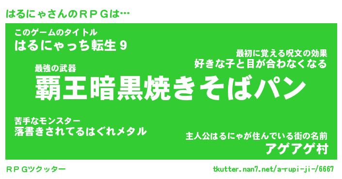 | 胡散臭い通販商品みたいなあだ名 | 『億万長者になれる水晶球…その名も「はるにゃ」』 |