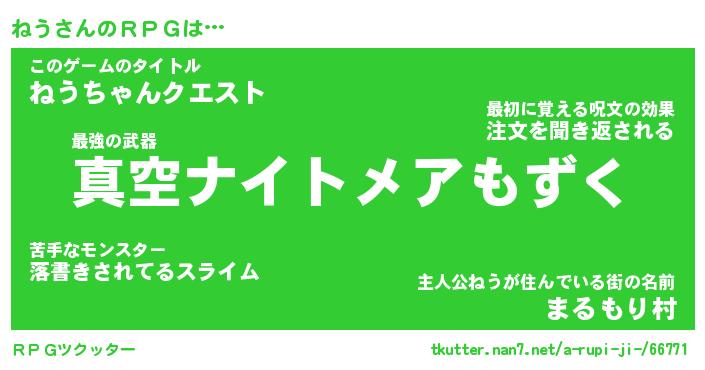 | 男性向けラノベタイトル風あだ名 | 『ネウアートオンライン』 |