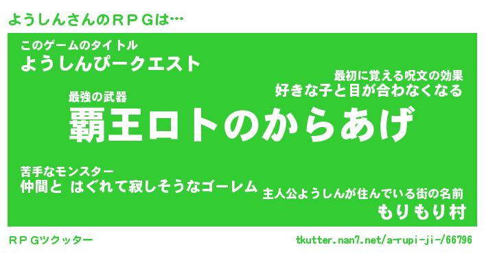 | ファンタジー風あだ名 | 『ヨウフェル』『エターナルヨウシンー』 |