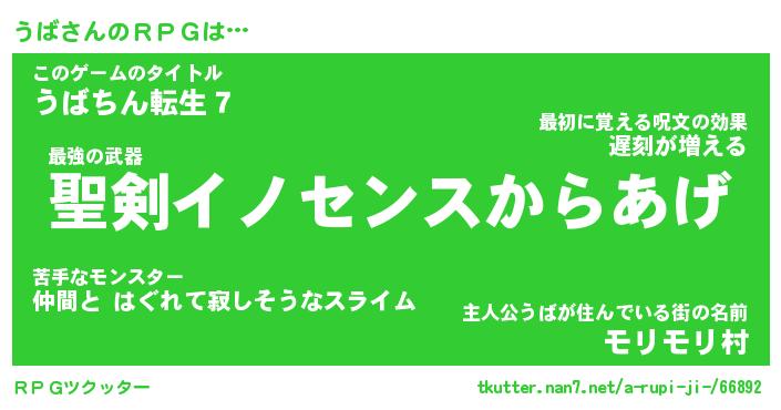 | ファンタジー風あだ名 | 『ウバフェル』『エターナルウバー』 |