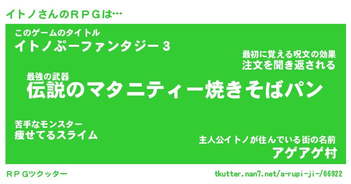 | ファンタジー風あだ名 | 『イトフェル』『エターナルイトノー』 |