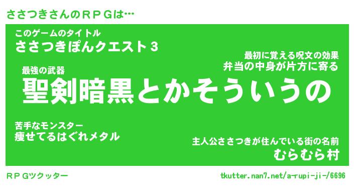| 胡散臭い通販商品みたいなあだ名 | 『必ず成功する水晶球…その名も「ささつき」』 |