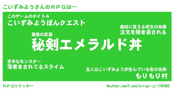 | 胡散臭い通販商品みたいなあだ名 | 『必ず成功する霊験あらたかなお札…その名も「こいずみよう」』 |