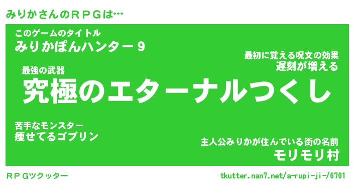 | 女子向けラノベタイトル風あだ名 | 『みりか姫と円卓の騎士』 |