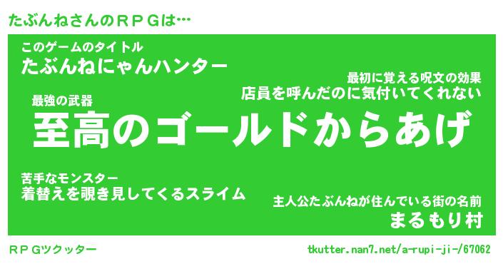 | 男性向けラノベタイトル風あだ名 | 『タブンネアートオンライン』 |