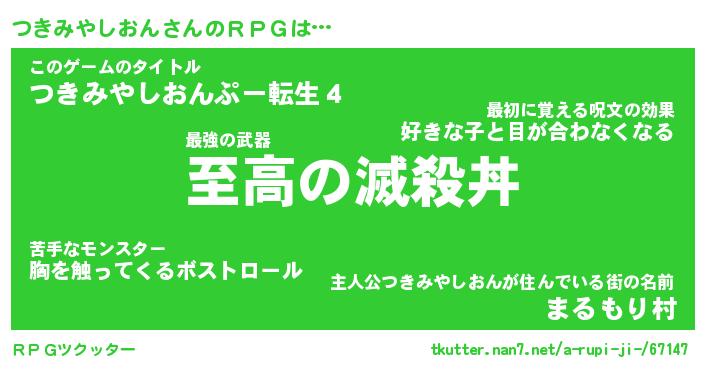 | 男性向けラノベタイトル風あだ名 | 『ツキミヤシオンアートオンライン』 |