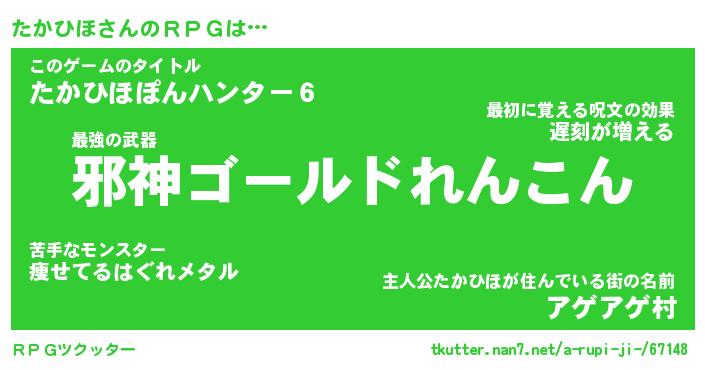 | 男性向けラノベタイトル風あだ名 | 『タカヒホアートオンライン』 |