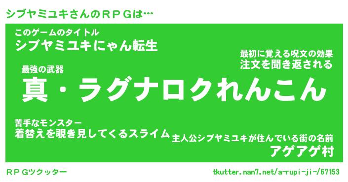 | 男性向けラノベタイトル風あだ名 | 『シブヤミユキアートオンライン』 |