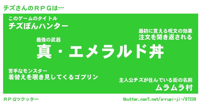 | 男性向けラノベタイトル風あだ名 | 『チズアートオンライン』 |