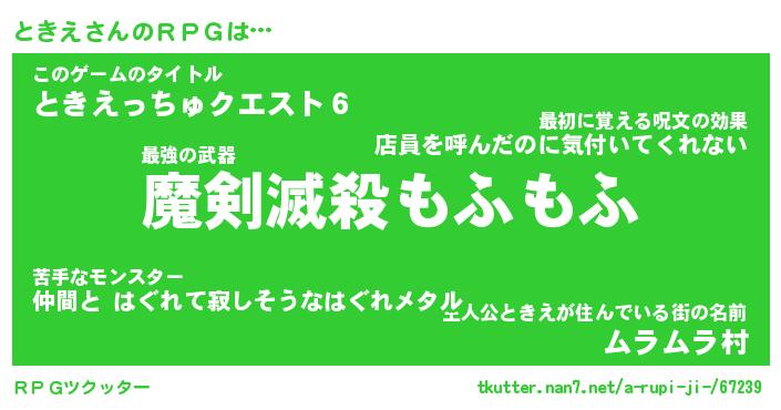 | ファンタジー風あだ名 | 『トキフェル』『エターナルトキエー』 |