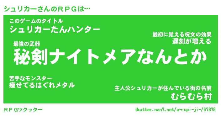 | ファンタジー風あだ名 | 『シュフェル』『エターナルシュリカーー』 |