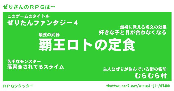 | ファンタジー風あだ名 | 『ゼリフェル』『エターナルゼリー』 |