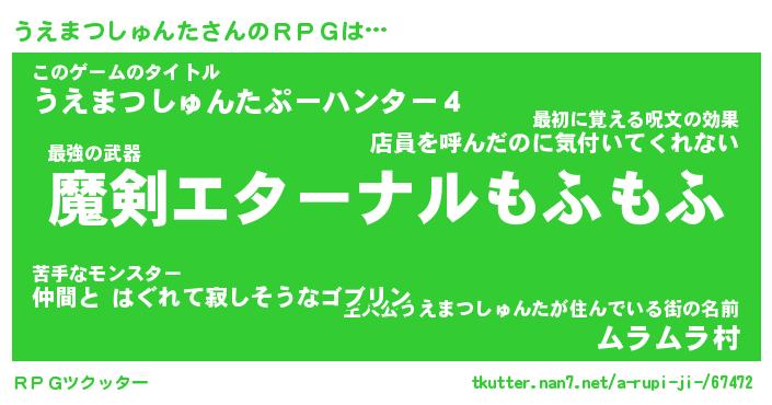 | 男性向けラノベタイトル風あだ名 | 『うえまつしゅんたの憂鬱』 |