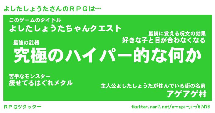 | ポケモン風あだ名 | 『ヨシチュウ』『ヨシタダネ』 |