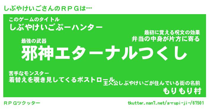 | 男性向けラノベタイトル風あだ名 | 『シブヤケイゴアートオンライン』 |
