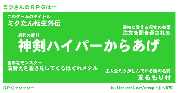 | ヘコむあだ名 | 『ミクにー』『つくし』『ミクお』 |