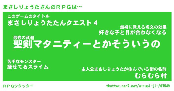 | 伝説のあだ名 | 『伝説のスナイパーまさしりょうた』 |