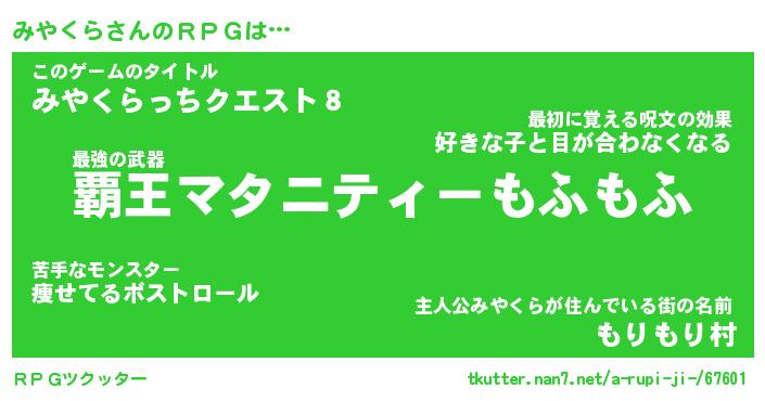 | 男性向けラノベタイトル風あだ名 | 『ミヤクラアートオンライン』 |