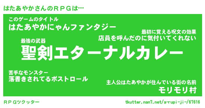 | ファンタジー風あだ名 | 『ハタフェル』『エターナルハタアヤカー』 |