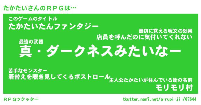 | ヒーロー風カッコイイあだ名 | 『スーパータカタイ』『幻影騎士タカ』 |