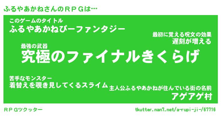 | 男性向けラノベタイトル風あだ名 | 『フルヤアカネアートオンライン』 |