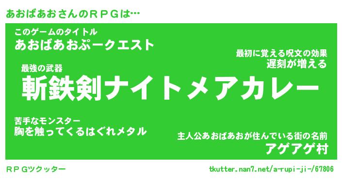 | 伝説のあだ名 | 『伝説のスナイパーあおばあお』 |