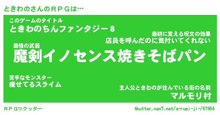 | ファンタジー風あだ名 | 『トキフェル』『エターナルトキワノー』 |