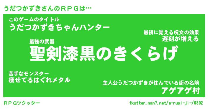 | 男性向けラノベタイトル風あだ名 | 『うだつかずきの憂鬱』 |