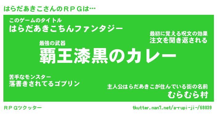 | 男性向けラノベタイトル風あだ名 | 『ハラダアキコアートオンライン』 |