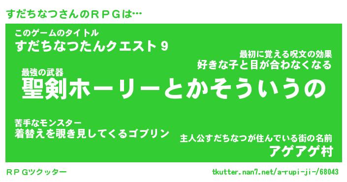 | 男性向けラノベタイトル風あだ名 | 『すだちなつの憂鬱』 |