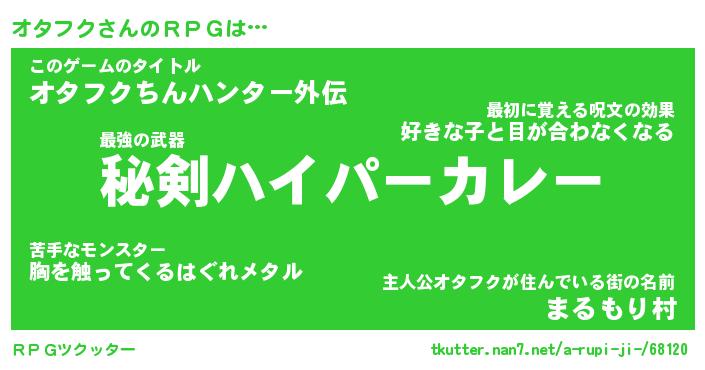 | ファンタジー風あだ名 | 『オタフェル』『エターナルオタフクー』 |