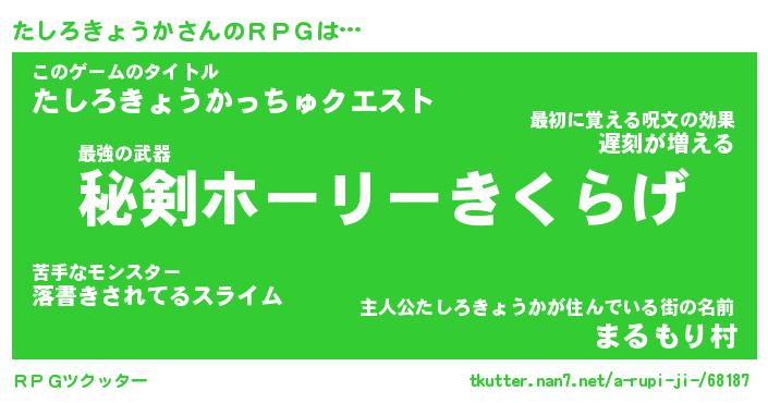 | 胡散臭い通販商品みたいなあだ名 | 『必ず成功する水晶球…その名も「たしろきょうか」』 |