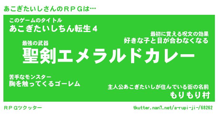 | 男性向けラノベタイトル風あだ名 | 『あこぎたいしの憂鬱』 |