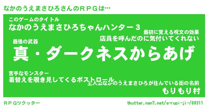 | 伝説のあだ名 | 『封印されし傭兵なかのうえまさひろ』 |