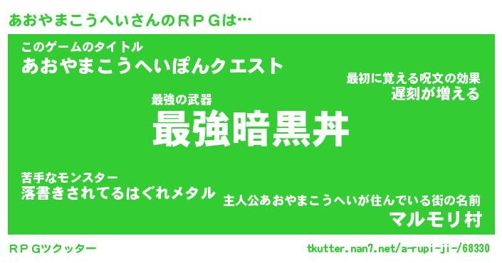 | 男性向けラノベタイトル風あだ名 | 『アオヤマコウヘイアートオンライン』 |