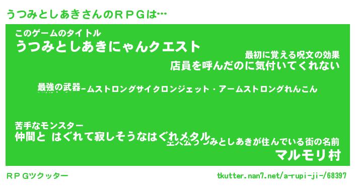 | 胡散臭い通販商品みたいなあだ名 | 『必ず成功するブレスレット…その名も「うつみとしあき」』 |