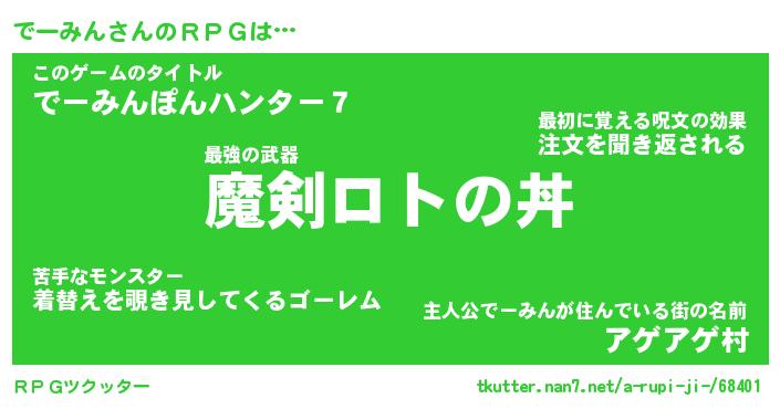 | 男性向けラノベタイトル風あだ名 | 『でーみんの憂鬱』 |