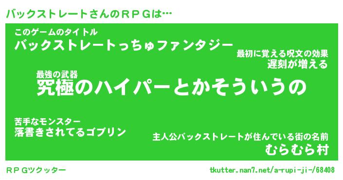 | 男性向けラノベタイトル風あだ名 | 『バックストレートアートオンライン』 |