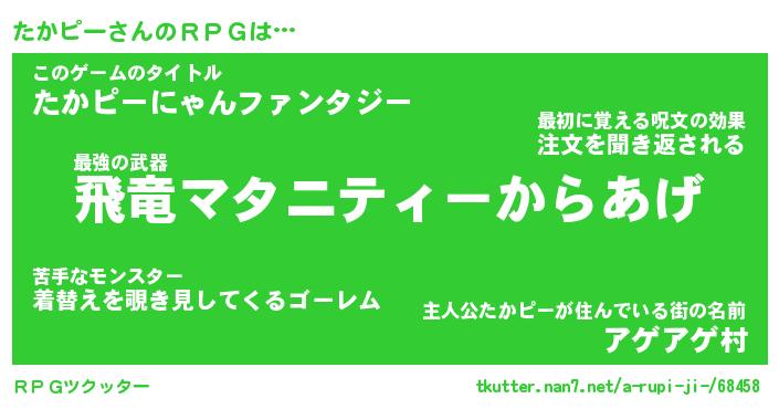| 男性向けラノベタイトル風あだ名 | 『タカピーアートオンライン』 |