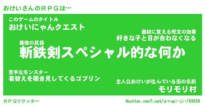 | 男性向けラノベタイトル風あだ名 | 『おけいの憂鬱』 |