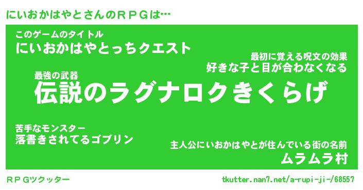 | 男性向けラノベタイトル風あだ名 | 『にいおかはやとの憂鬱』 |