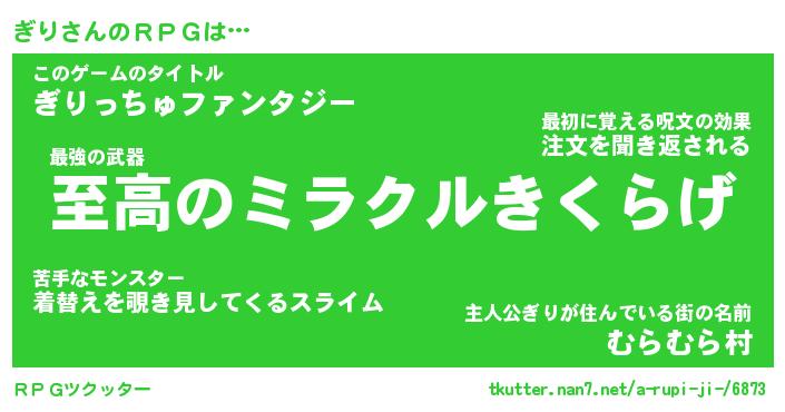 | ヘコむあだ名 | 『ぎりにー』『つくし』『ぎりぷりん』 |