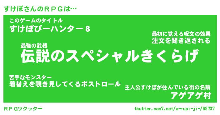 | 男性向けラノベタイトル風あだ名 | 『すけぽの憂鬱』 |