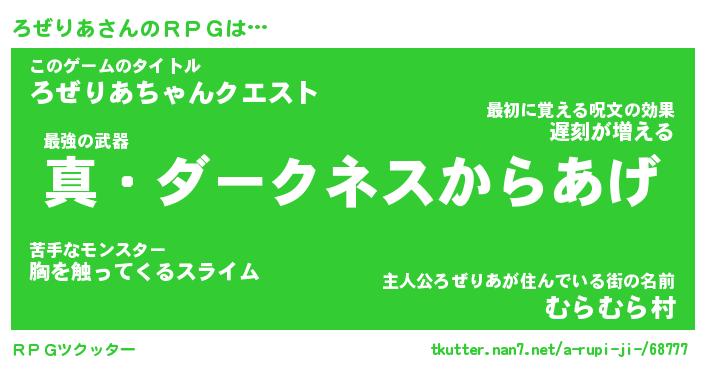 | ヘコむあだ名 | 『ろぜにゅー』『牛乳』『ろぜぷりん』 |