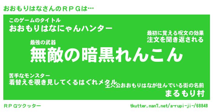 | 男性向けラノベタイトル風あだ名 | 『オオモリハナアートオンライン』 |