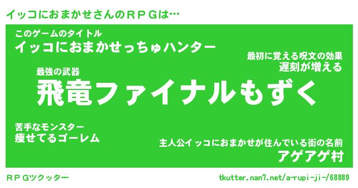 | 男性向けラノベタイトル風あだ名 | 『イッコニオマカセアートオンライン』 |