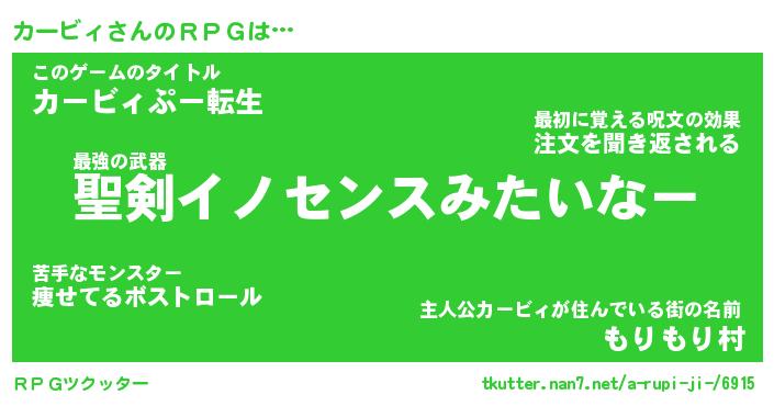 | ファンタジー風あだ名 | 『カーフェル』『エターナルカービィー』 |