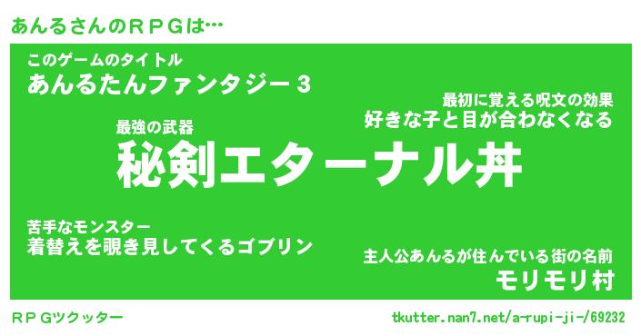 | ファンタジー風あだ名 | 『アンフェル』『エターナルアンルー』 |