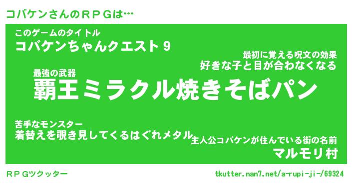 | 男性向けラノベタイトル風あだ名 | 『コバケンアートオンライン』 |