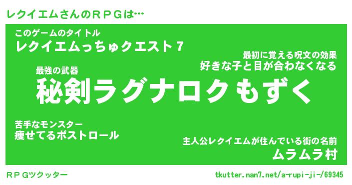| ファンタジー風あだ名 | 『レクフェル』『エターナルレクイエムー』 |